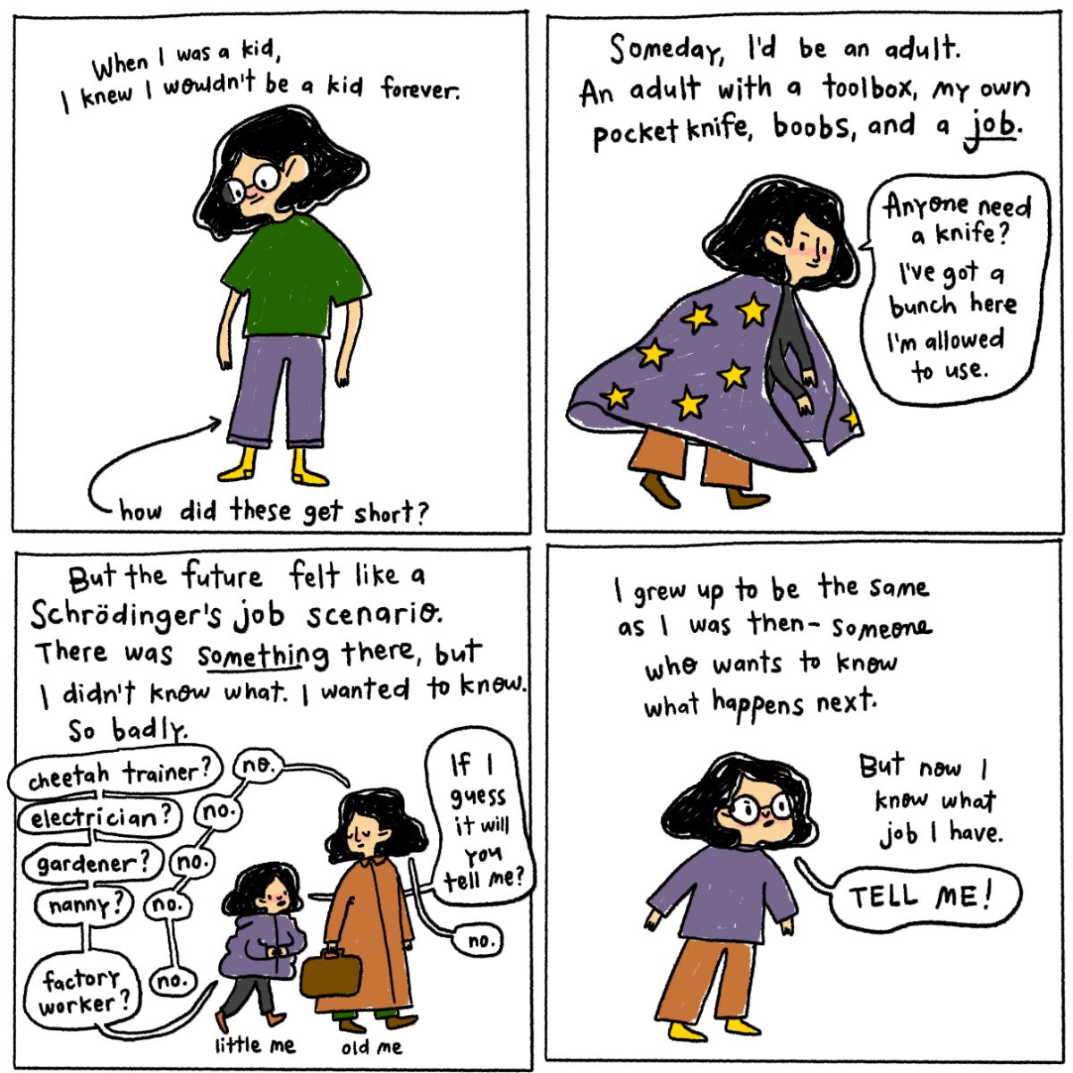 Welcome to Issue #2 of Nervous Magazine, about what jobs we wanted when we grew up. Nervous magazine is a monthly newsletter with more comics than usual. And you’re already reading it! This is how you spend your time!